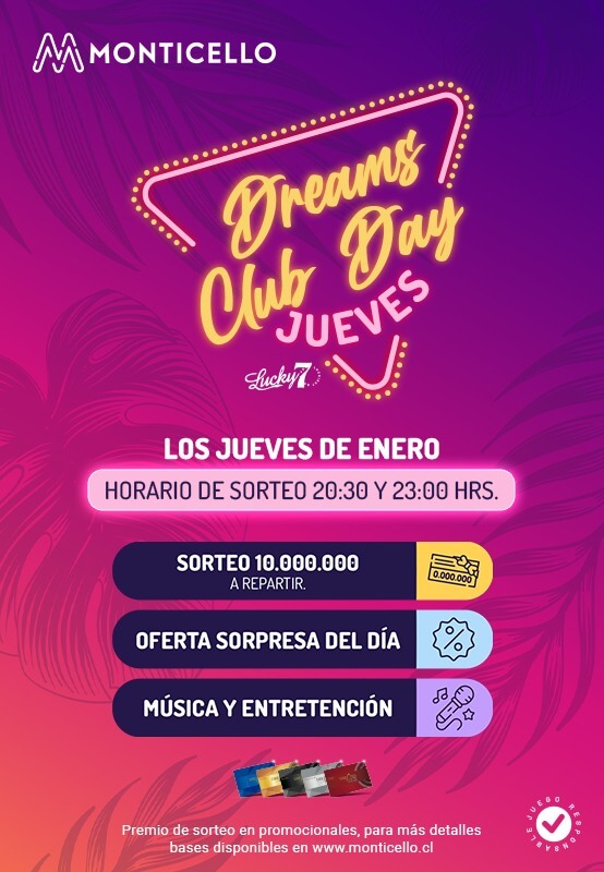Monticello tiene espectaculares sorteos y promociones para que la experiencia de visitarnos sea siempre diferente y te sorprenda.